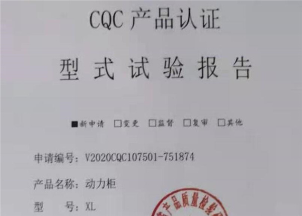 检测名称:XL动力配电柜产品认证资质